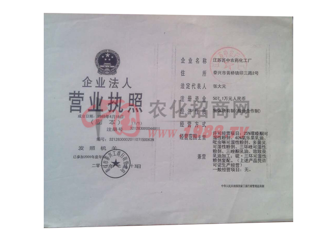 我廠系江蘇省農(nóng)藥生產(chǎn)定點(diǎn)廠家,國(guó)家中型企業(yè)。擁有外貿(mào)自營(yíng)進(jìn)出口權(quán),工廠占地面積4萬平方米,建筑面積2.8萬平方米。擁有固定資產(chǎn)2500萬元,具有農(nóng)藥原藥生產(chǎn),加工制造能力及化工產(chǎn)品生產(chǎn)條件,水、電、氣公共設(shè)施配套齊全,檢測(cè)手段完備,擁有氣相色譜議,液相色譜儀等檢測(cè)設(shè)備,工廠現(xiàn)在以生產(chǎn)農(nóng)藥殺菌劑、殺蟲劑、除草劑三大系列產(chǎn)品為主,年產(chǎn)值5000萬元以上,產(chǎn)品銷往全國(guó)各地。技術(shù)合作緊密層為水稻研究所,揚(yáng)州大學(xué)農(nóng)學(xué)院,熱忱歡迎有識(shí)志士前來洽談合作和加工生產(chǎn)。